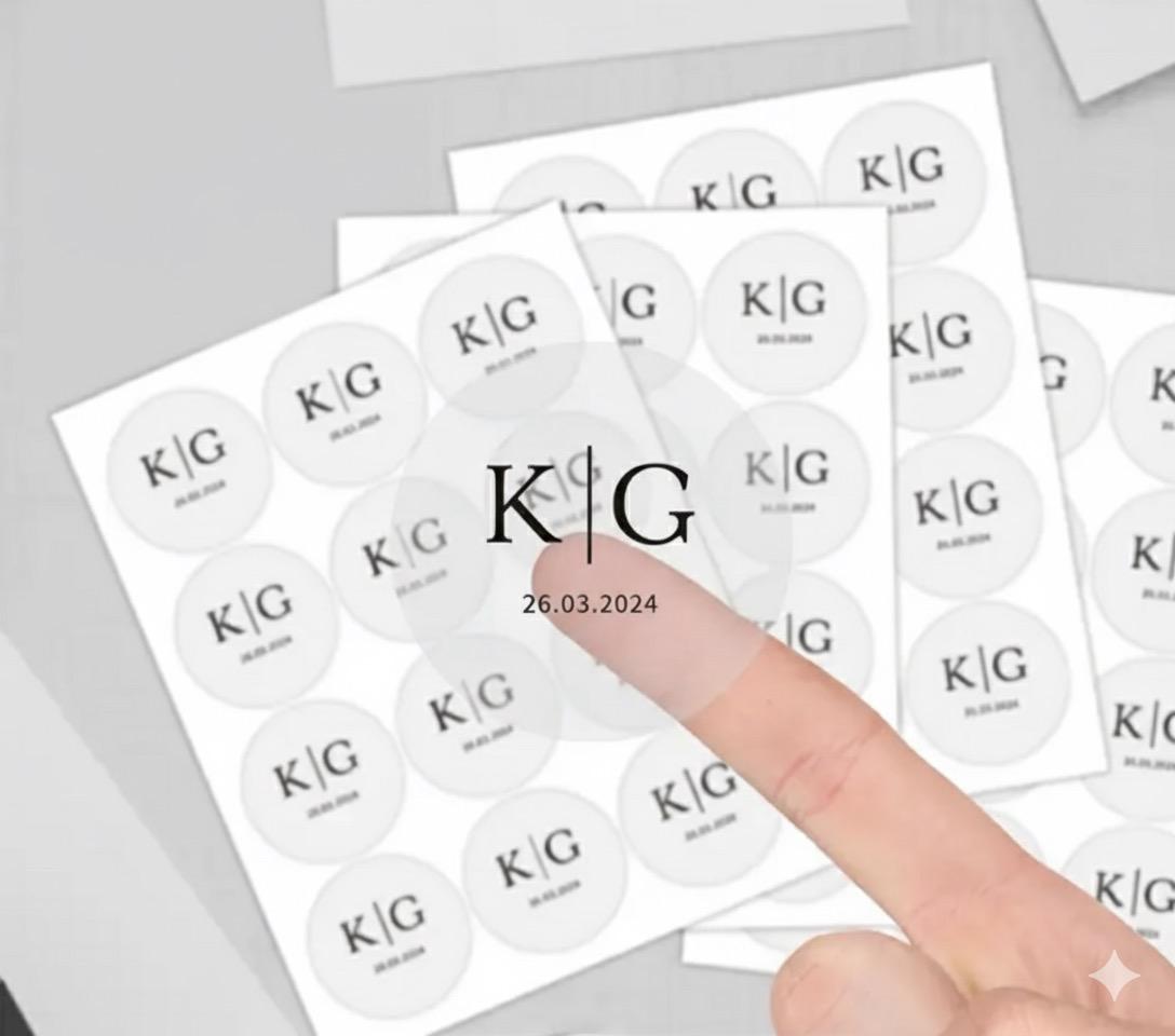 Τα διαφανή προσωποποιημένα αυτοκόλλητα στρογγυλού σχήματος (διάμετρος 4 εκ.) αποτελούν την ιδανική λεπτομέρεια για να δώσετε μοναδικό χαρακτήρα σε κάθε περίσταση. Μπορούν να τυπωθούν με αρχικά, ημερομηνίες, ονόματα ή λογότυπο, δημιουργώντας μια κομψή πινελιά που ταιριάζει άψογα σε γάμους, βαπτίσεις, εταιρικά δώρα ή χειροποίητες δημιουργίες.